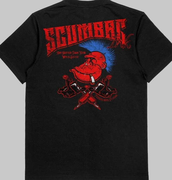 Looking to show off your love for tattoos and edgy style? Look no further than the Scumbag Ink t-shirt! Made from high-quality, breathable material and featuring a custom design by our resident tattoo artist, JJ, this shirt is perfect for both tattoo enthusiasts and casual streetwear fans. The bold and eye-catching print is sure to turn heads and start conversations, making it a must-have addition to your wardrobe. Whether you're heading to the tattoo parlor or just hanging out with friends, the Scumbag Ink t-shirt is the ultimate statement piece. Show off your love for ink and stand out from the crowd with this unique and stylish tee.